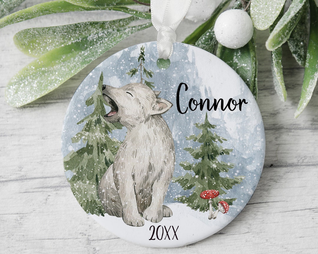 Wolf Ornament, Personalized Gift for Kids, Babys First Christmas