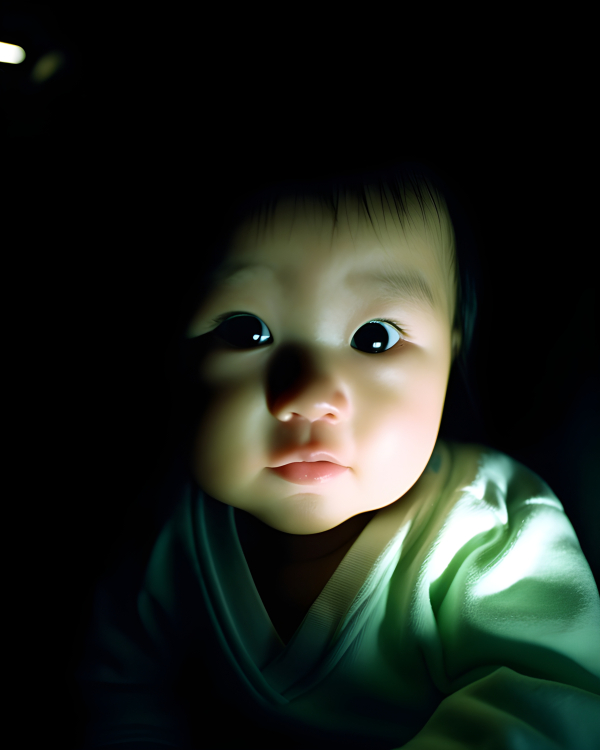 A baby in the dark with a single light source Impossible Images Unique stock images for