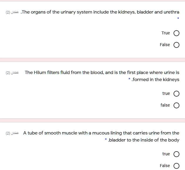 SOLVED 0 The organs of the urinary system include the kidneys, bladder and urethra True False 0