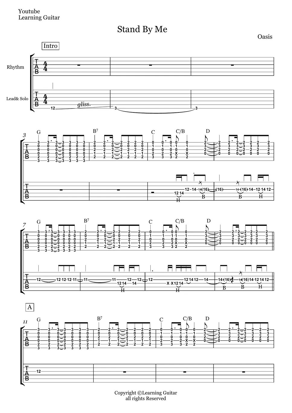 Oasis Stand By Me (Guitar TAB (Rhythm&Lead)) TAB by Learning Guitar