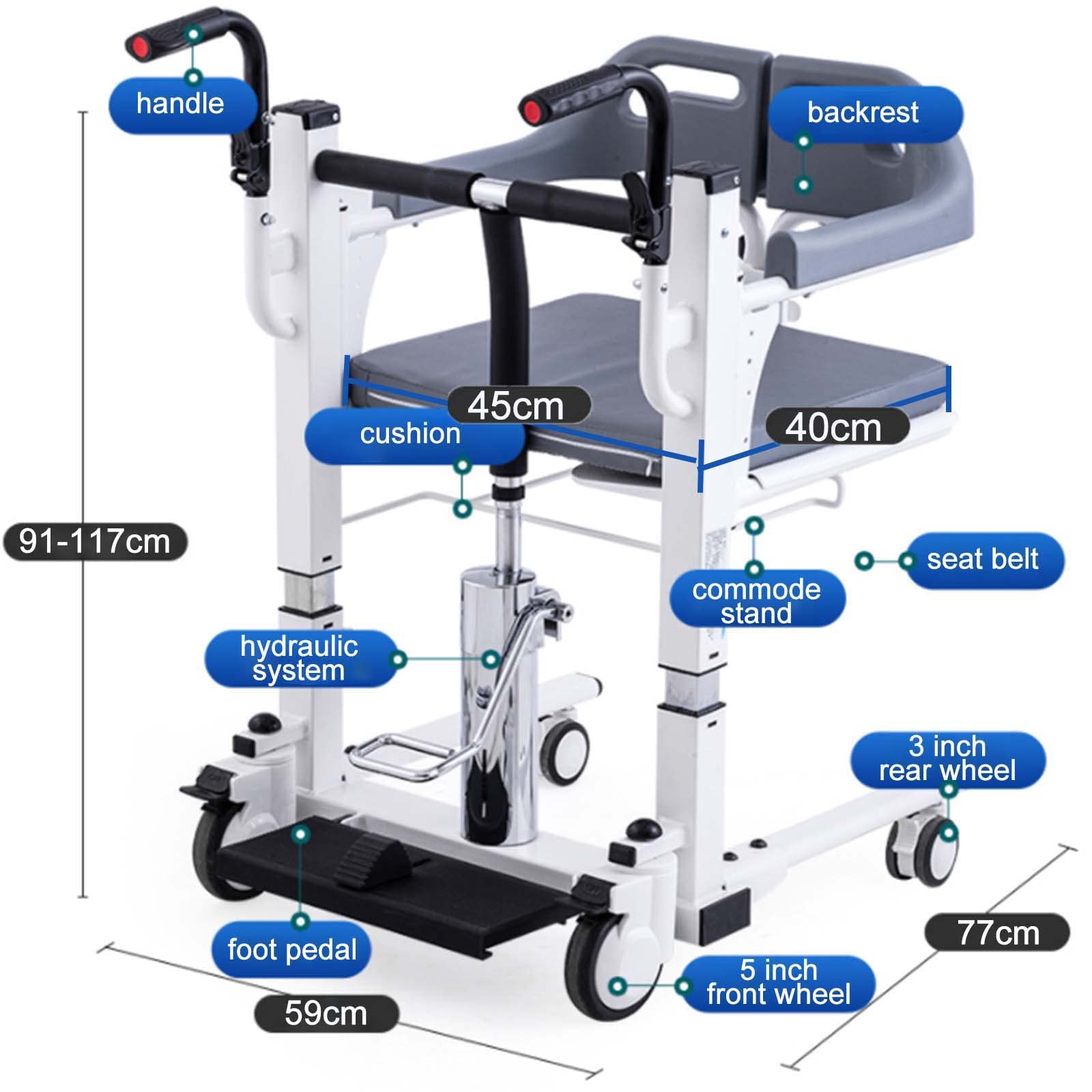 PAYRFV Wheelchair Hydraulic Transfer Chair Handicapped Transport Chair Bathroom Patient Lift for Transport Chair For Bathroom The padded seat provides more comfort than standard shower chairs and the. dmi rolling shower chair, commode, transport chair, fsa eligible, rolling bathroom wheelchair for handicap,. rolling shower commode chair easily moves in and out of the shower and directly over a standard size toilet. 1800wheelchair offers wheelchairs that facilitate easier movement in bathrooms and shower areas.. Transport Chair For Bathroom.