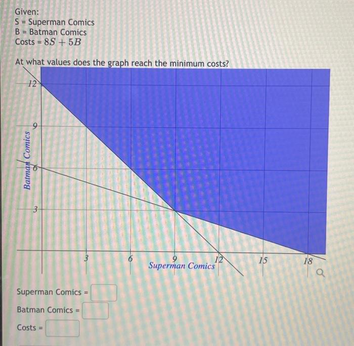 Solved S= Superman Comics B= Batman Comics Costs =8S+5B At