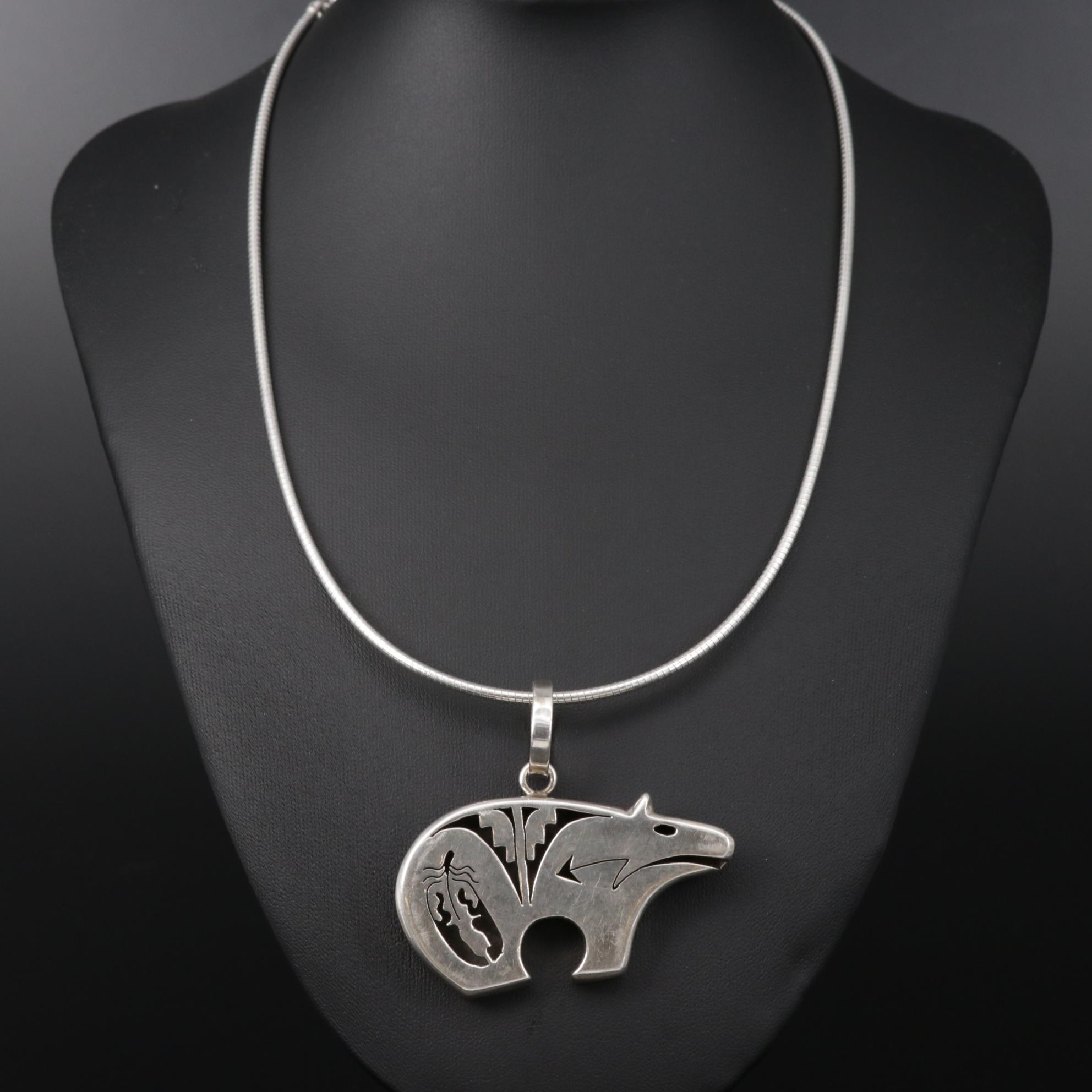 Bennie Ration Navajo Diné Sterling Silver Bear Pendant Necklace EBTH