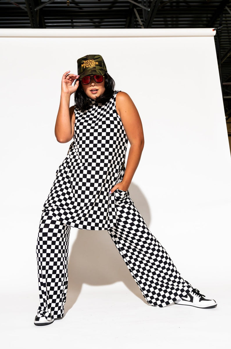 Gigi Sleeveless Ribbed Playsuit in Black + White Check *RESTOCKED