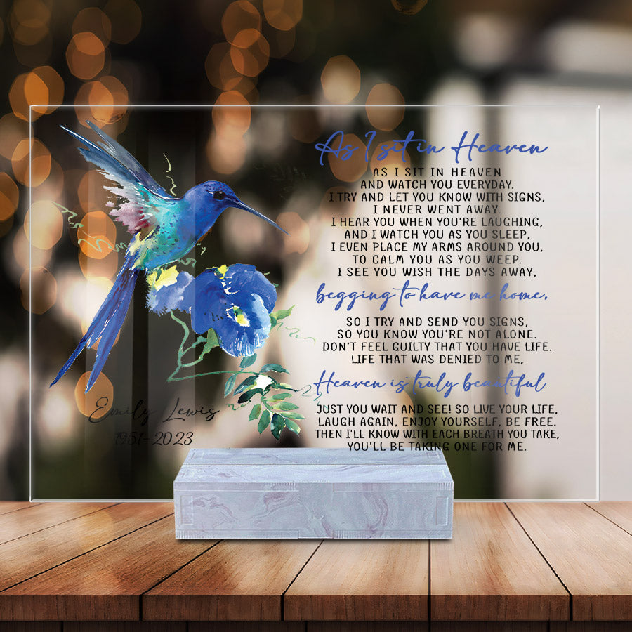 Personalized Memorial Gift As I Sit In Heaven Personalized Name Plaques Humming Bird Gifts
