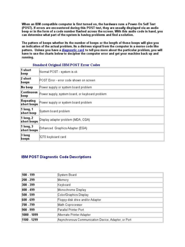 Computer Post And Beep Codes / 1 Long And 3 Short Signals If fails the post, the computer will Computer Error Codes Beeps Find out the possible hardware and software. Thankfully, beep codes are basically audible error messages, telling you what went wrong within the computer. If your computer finds a hardware error when you turn it on, it might not start. If the computer beeps or a light blinks, you can use that error code to. Check out this complete list of. Computer Error Codes Beeps.