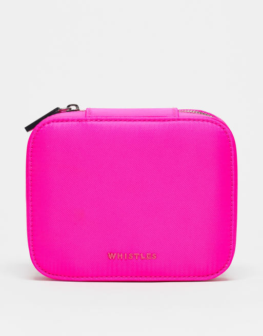 Whistles nylon jewellery box with compartment pouch in bright pink ASOS