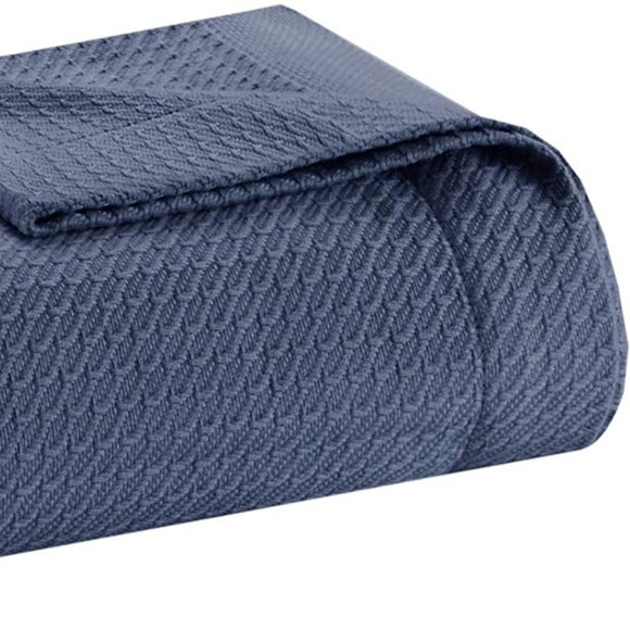 Bedding Luxury Oversized Cotton Knitted Blanket Queen Sized Navy