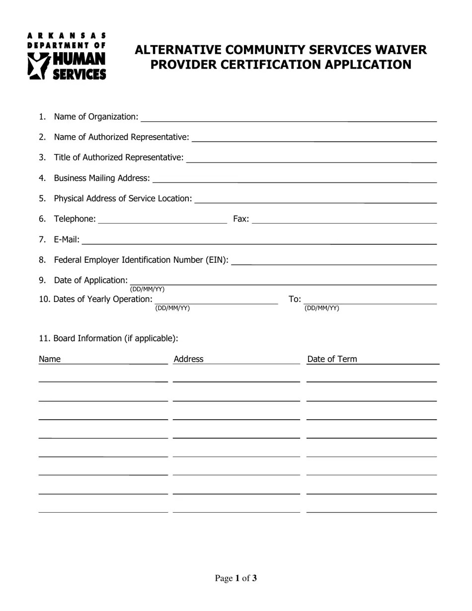 Arkansas Alternative Community Service Waiver Provider Certification