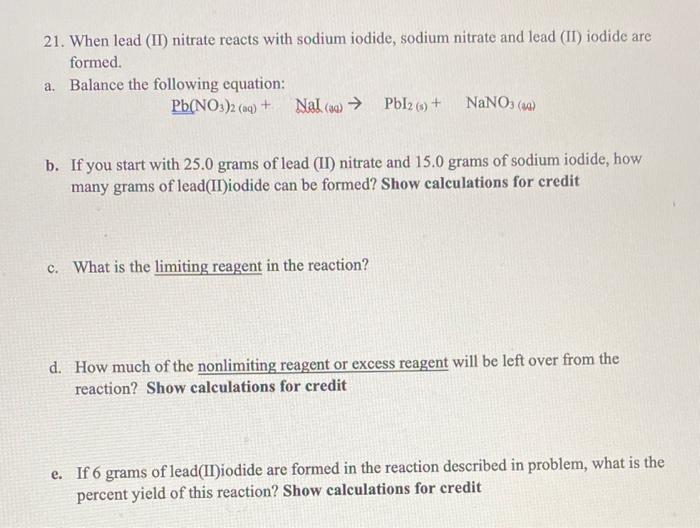 Solved 21. When lead (II) nitrate reacts with sodium iodide,