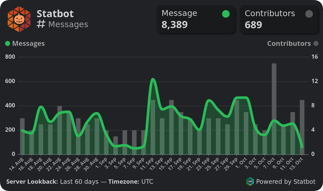 9 Best Discord Bots For Your Server Server Stats Discord Bot Invite Serverstats is a bot that shows various statistics of your discord server, such as member, channel, role, emoji, boost, and goal counts. Serverstats can show you server info, user info, role info, channel info, emoji info, and invite info, all information command show advanced. Ensure you're logged into discord on your browser. Statbot tracks and displays various statistics and data. Server Stats Discord Bot Invite.