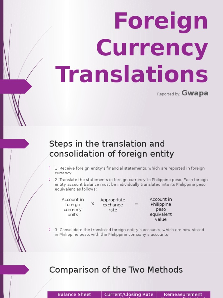 PPT FOREIGN CURRENCY TRANSLATION PowerPoint Presentation, free Foreign Currency Translation Definition Foreign currency translation is the process of converting financial statements from one currency into another, allowing companies. To measure in foreign currency is to quantify an attribute of an item in a unit of currency other than the reporting currency. Foreign currency translation is used to convert the results of a parent company's. What is foreign currency translation? A foreign. Foreign Currency Translation Definition.