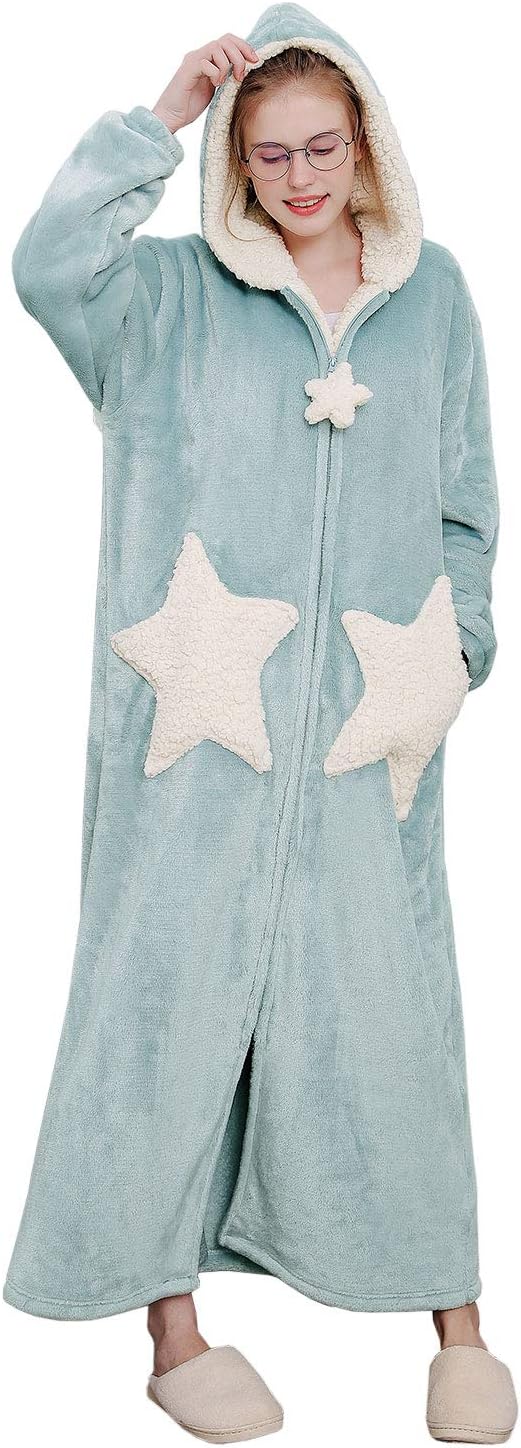 CaiDieNu Womens Zip Up Long Robe with Hood,Moon Star Womens Bathrobes