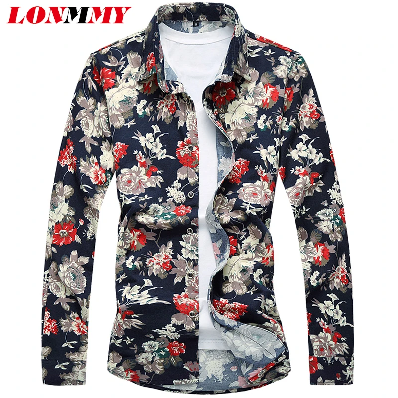 LONMMY PLUS SIZE M 7XL Mens long sleeve silk shirts Fashion Floral mens