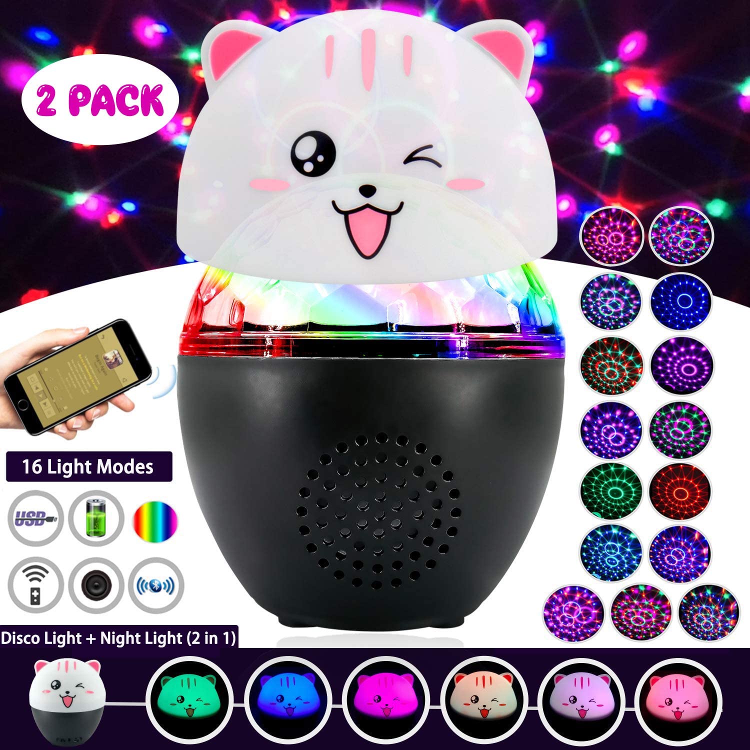 Inpher 3 in 1 Bluetooth Disco Ball Rechargeable 16 Light Modes Sound