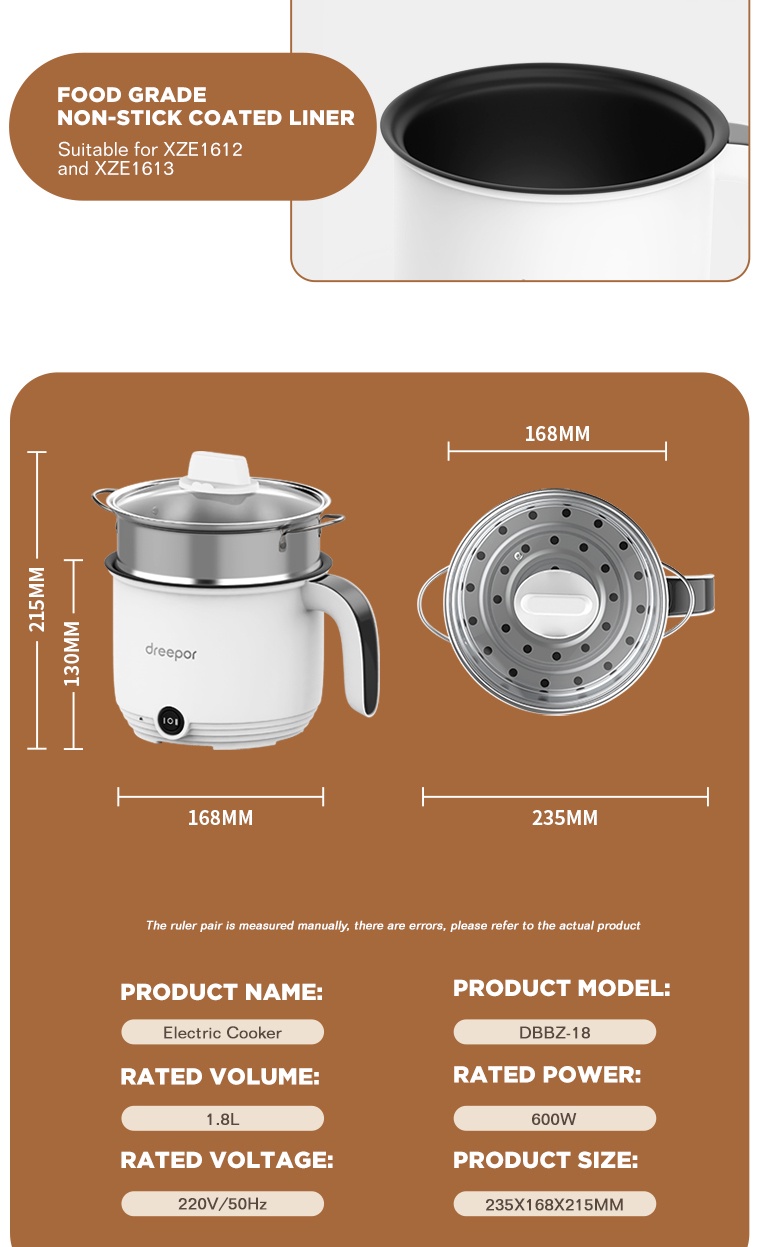Dreepor Mini Rice Cooker With Steamer Small Non Stick Hot Pot