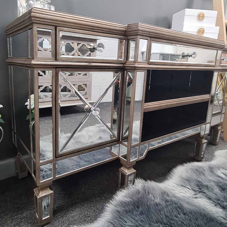 Belfry Antique Mirrored TV Entertainment Picture Perfect Home Champagne Gold Mirrored Tv Cabinet The three equal sized drawers and two cupboards gives you a larger. Gorgeous mirrored tv cabinet with 2 doors and 3 drawers enhanced by a beautiful champagne gold glistening trim. Elegant, stylish storage for your living room; Part of the stunning athens range. Mirrored tv stands & entertainment units: This stunning large mirrored tv media unit from our monte carlo. Champagne Gold Mirrored Tv Cabinet.