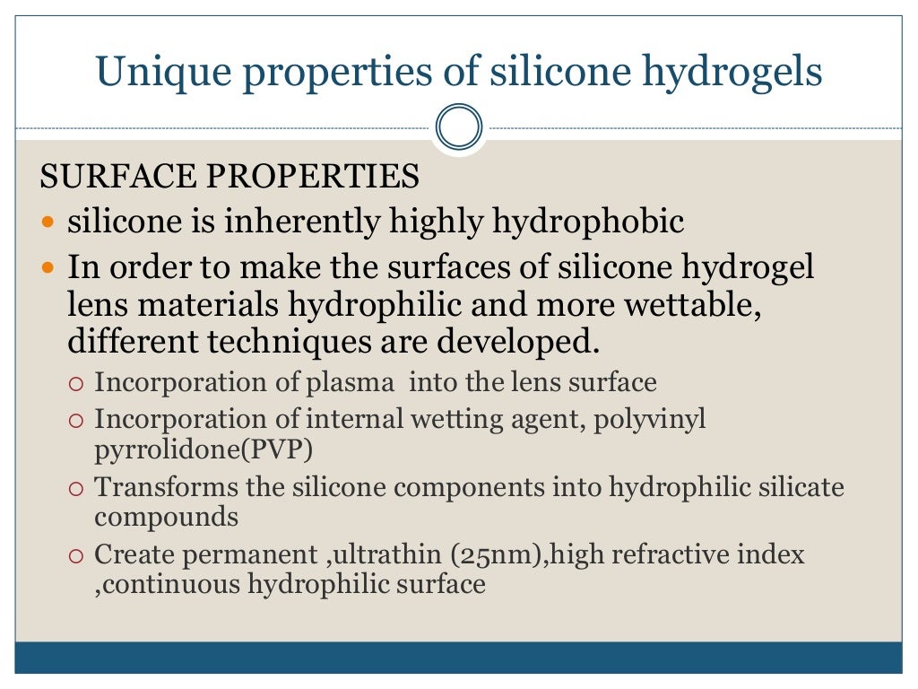 Silicone Hydrogel Contact Lens (Monthly) NewMan Optics Silicone Hydrogel Uses Silicone hydrogel’s high oxygen permeability means contact lens wearers are less likely to suffer from corneal hypoxia or a lack of oxygen supply to the cornea. In fact, silicone hydrogel lenses enable up to five times more oxygen to reach the cornea than regular hydrogel lenses. Wearing contact lenses increases the risk of developing an eye infection. Find out if. Silicone Hydrogel Uses.