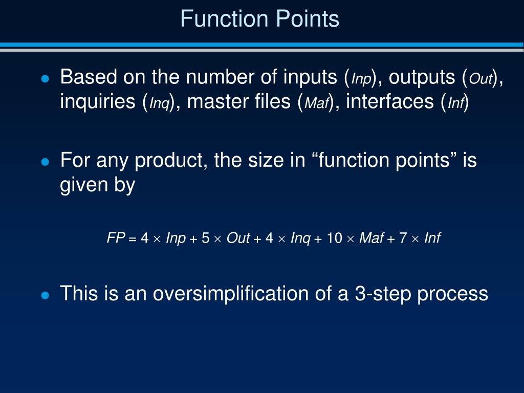 PPT PLANNING AND ESTIMATING PowerPoint Presentation, free download Characteristics Of Function Point Metric Function point (fp) is an element of software development which helps to approximate the cost of development early in the process. Fpa is used to make estimate of the software project, including its testing in terms of functionality or function size of the software product. The most widely used method for software sizing is function point analysis [5,6]. Fp (function. Characteristics Of Function Point Metric.