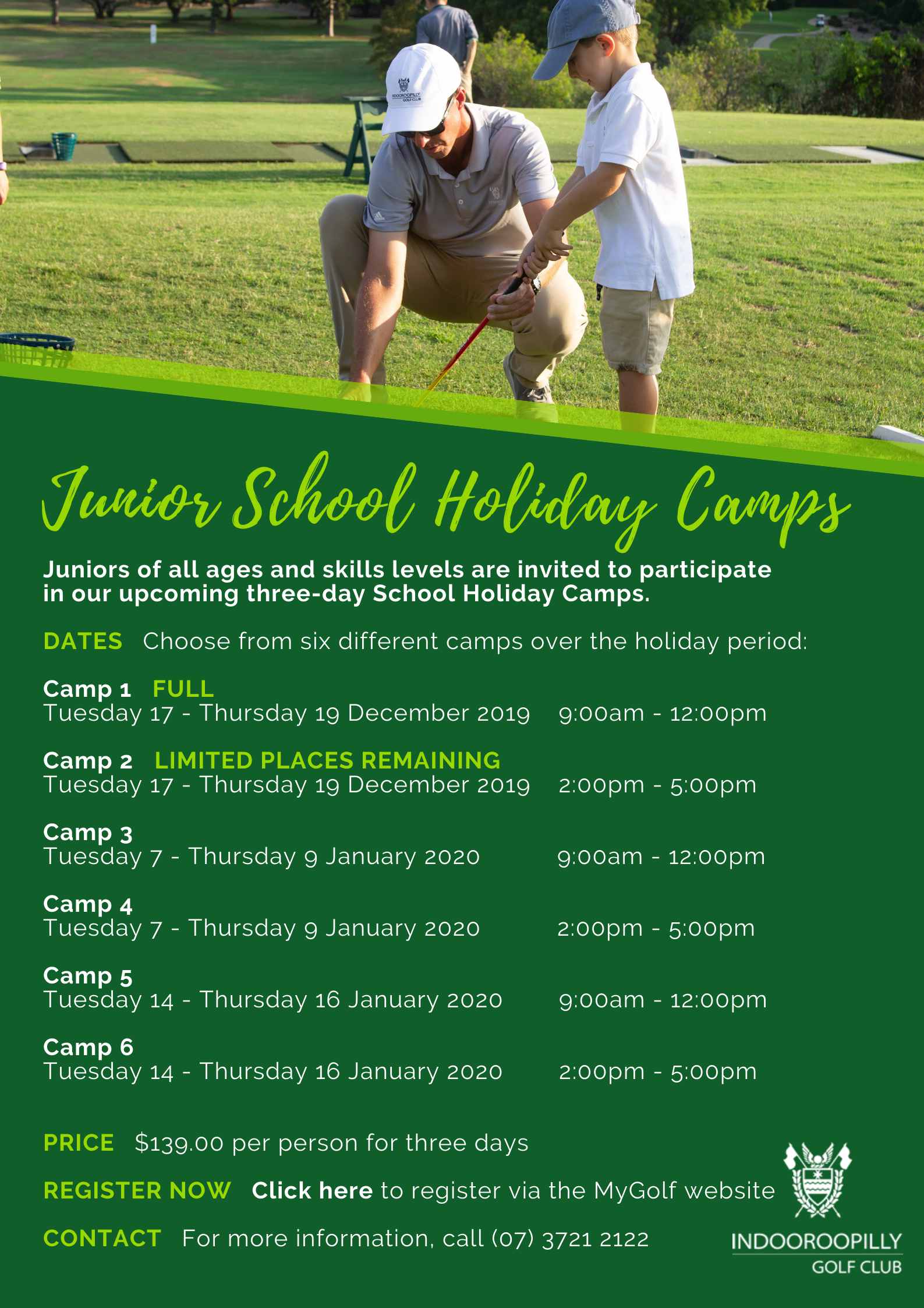 Junior School Holiday Camps Registration Now Open Indooroopilly Junior Golf School Holiday Program Our camps are organised for each of the spring and summer school holidays. They are designed for both boys and girls aged. We offer the best junior golf programs in sydney, take a look at our range of kids golf lessons below to find what suits you. The aim is to make the camps as fun as possible and. Prime. Junior Golf School Holiday Program.