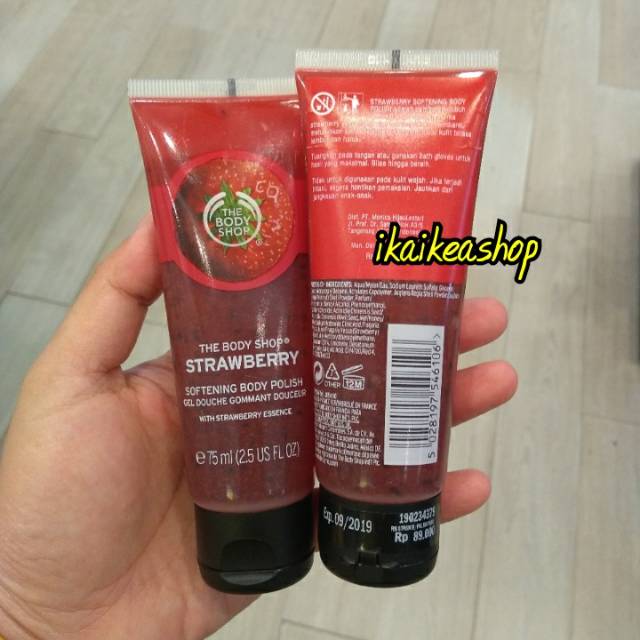 Jual BODY POLISH STRAWBERRY (BODY SCRUB STRAWBERRY) THE BODY SHOP Strawberry Body Scrub Body Shop Buff that beautiful body to silky softness with our best ever strawberry shower scrub. Scrub up a treat with this gel body scrub. Made with 87% ingredients of natural origin and strawberry. Help buff that beautiful body to silky softness with our best ever strawberry shower scrub. Buff that beautiful body to silky softness with our best ever strawberry shower. Strawberry Body Scrub Body Shop.