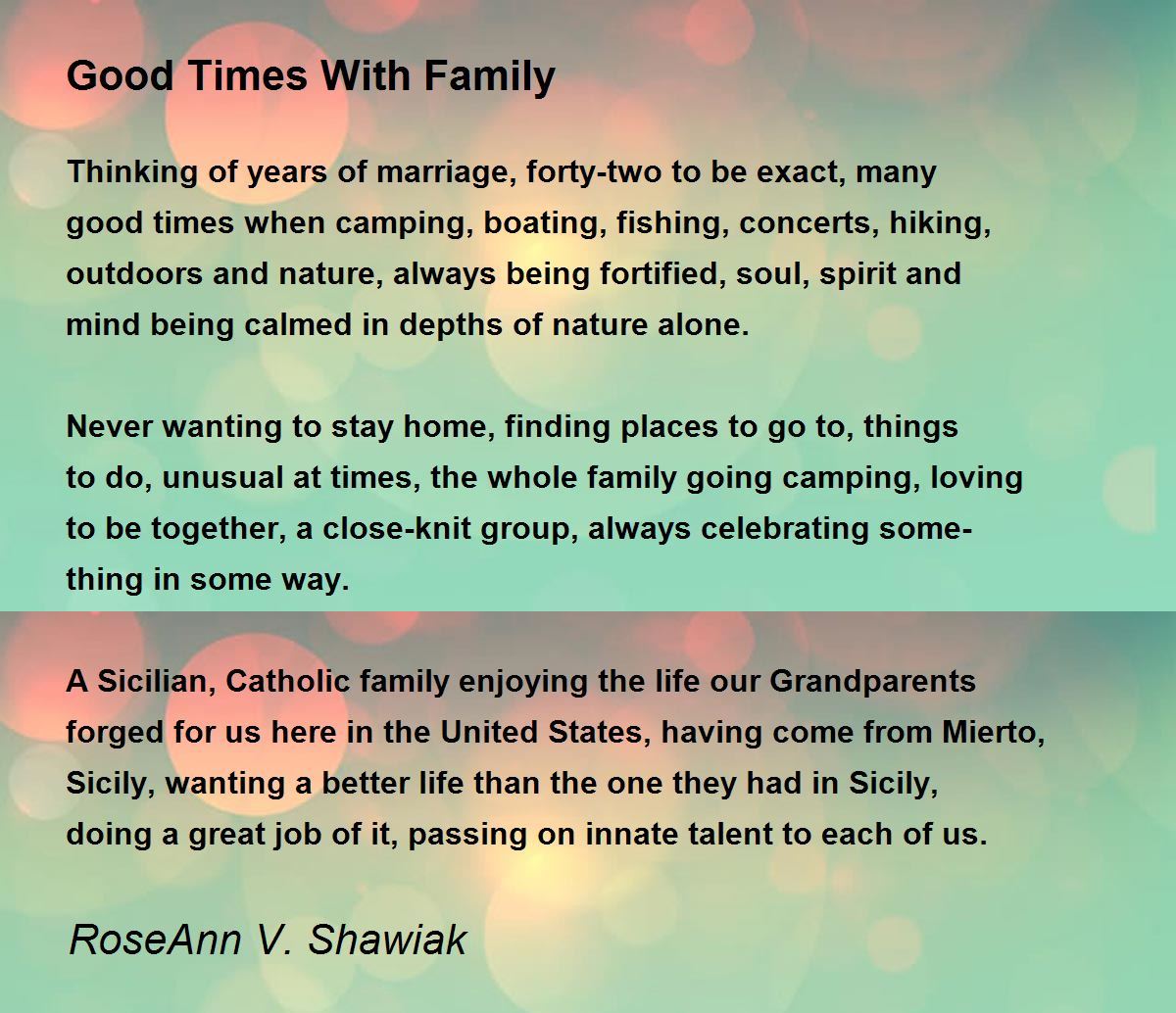 Good Times With Family Good Times With Family Poem by RoseAnn V. Shawiak
