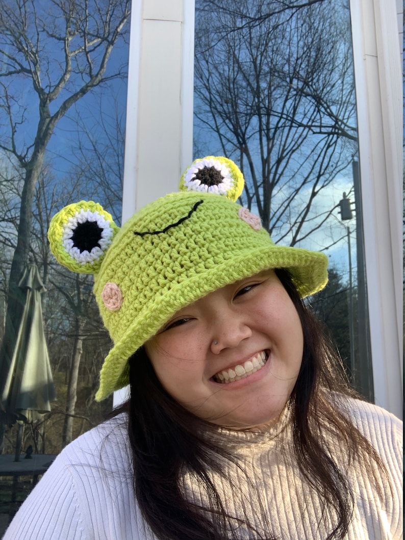 Crochet Frog Bucket Hat Etsy Bucket Frog Hat  Frog bucket hat for women/men, foldable lightweight sun hat for summer spring, wide brim frog hat for adult, teen, kids Green bucket hat is shaped like a smiling frog. Made of soft cotton which is sweat. Check out our cute frog bucket hat selection for the very best in unique or custom, handmade pieces from our bucket hats shops. Celebrate. Bucket Frog Hat.