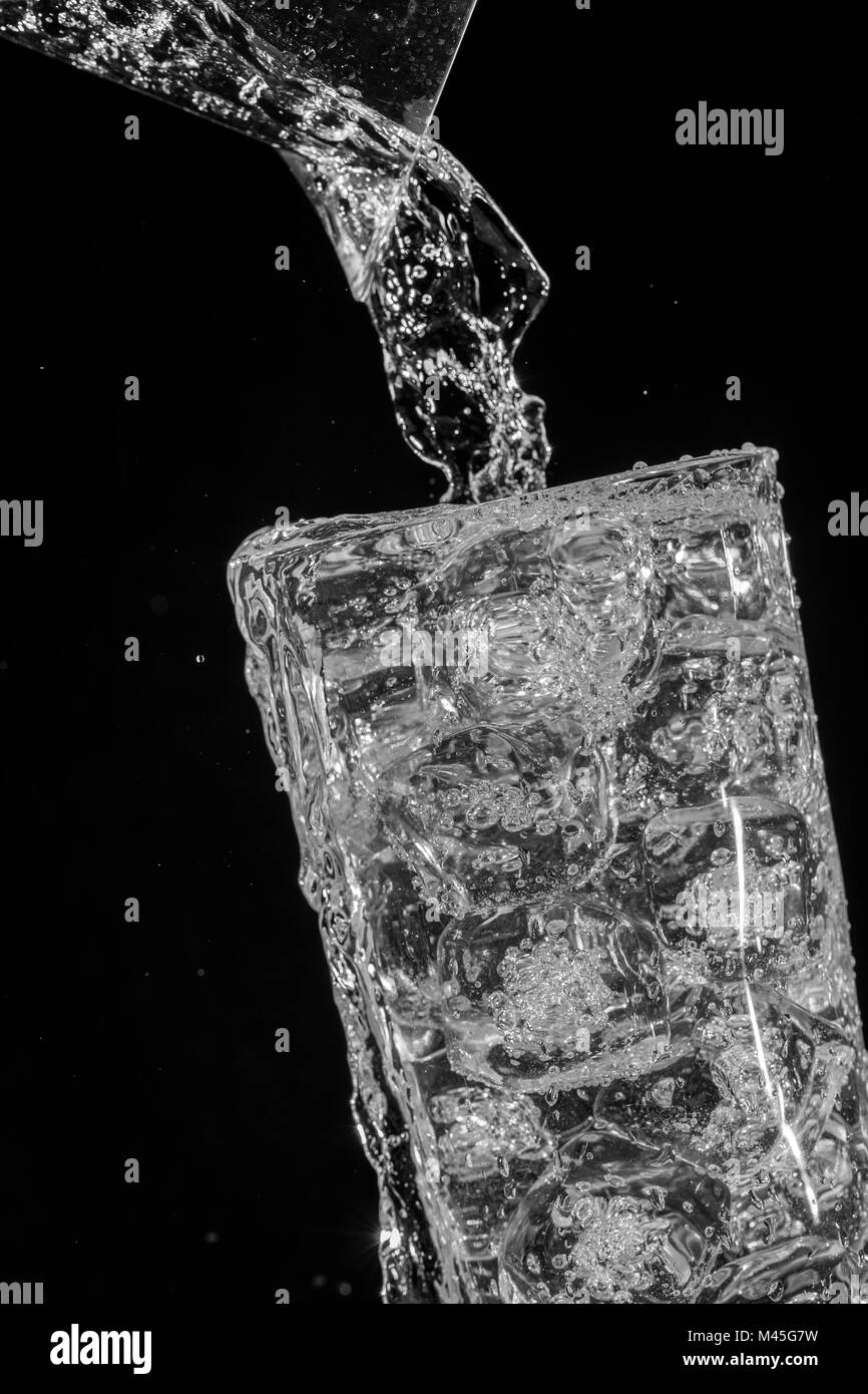 sparkling water overflow over ice cubes Stock Photo Alamy