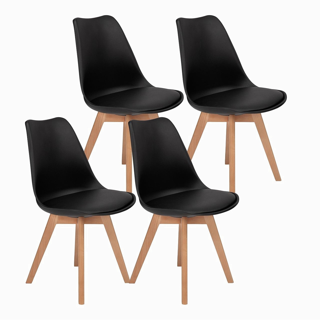 Plastic Dining Chair with Wooden Legs, Padded, 4 pc / Set Black
