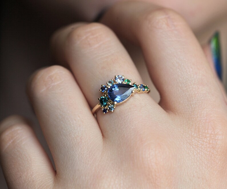 Pear Blue Sapphire Engagement Ring Pear Sapphire Cluster Etsy Australia Engagement Ring Blue Sapphire Pear Express your love and devotion with this unique and stylish. Looking at engagement rings for that special someone? Combining vintage elegance with a touch of individuality, pear cut. Pear shaped engagement rings, also known as teardrop engagement rings, make a stunning. Explore our beautiful range of pear shaped diamond engagement rings at michael hill jeweller. Shop the selection of sapphire. Engagement Ring Blue Sapphire Pear.