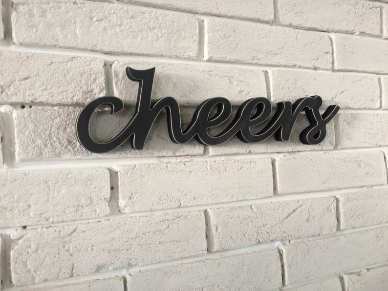 Wood Cheers Cutout Large Cheers Sign Bar Decor Cheers Etsy Bar Decor Cheers Sign Cheers sign, home bar decor, alcohol wall sign, bar decor for home bar, basement bar decor, alcohol signs, kitchen bar sign, wire word art Beautifully crafted neon signs designed to enlighten and bring a stunning addition to any interior décor or get a neon word sign for home. Vous y trouverez les meilleures pièces uniques ou personnalisées de nos boutiques.. Bar Decor Cheers Sign.