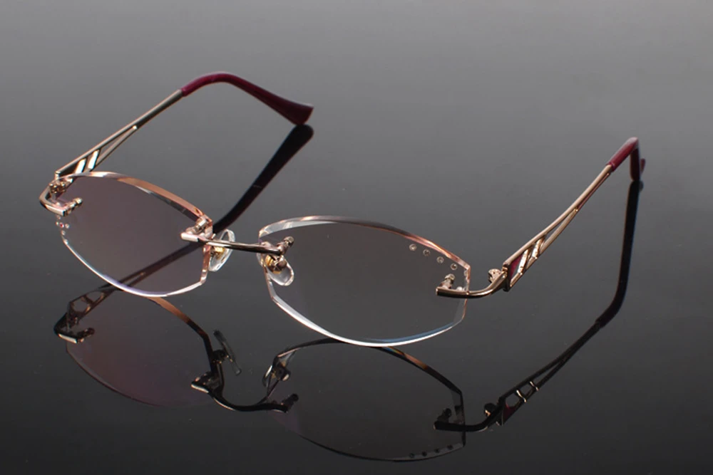 Rimless Titanium Alloy Luxury Diamond Cutting Edges Reading Glasses +1. Bottom Rimless Glasses Find half rim glasses and semi rimless sunglasses at affordable prices. Our half frame glasses come in metal and titanium materials. Our collection includes frame styles, materials, and colors for the whole family. Rimless glasses are eyeglasses without a visible frame. They offer a minimalistic, less noticeable design that complements any outfit and occasion, providing versatility. Instead, they are attached. Bottom Rimless Glasses.