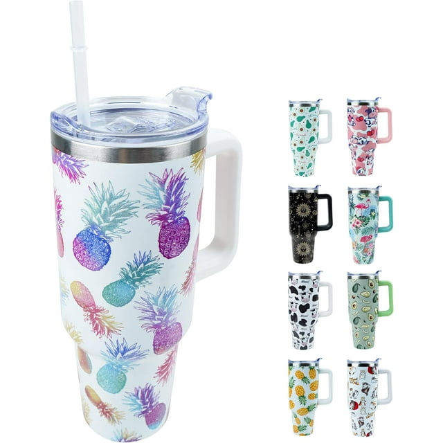 40 oz Tumbler with Handle and Straw, Stainless Steel Insulated Cup with