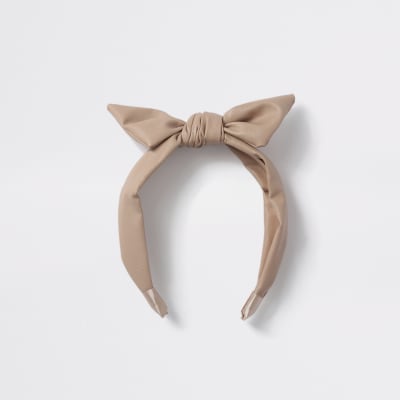 Girls brown faux leather bow headband River Island