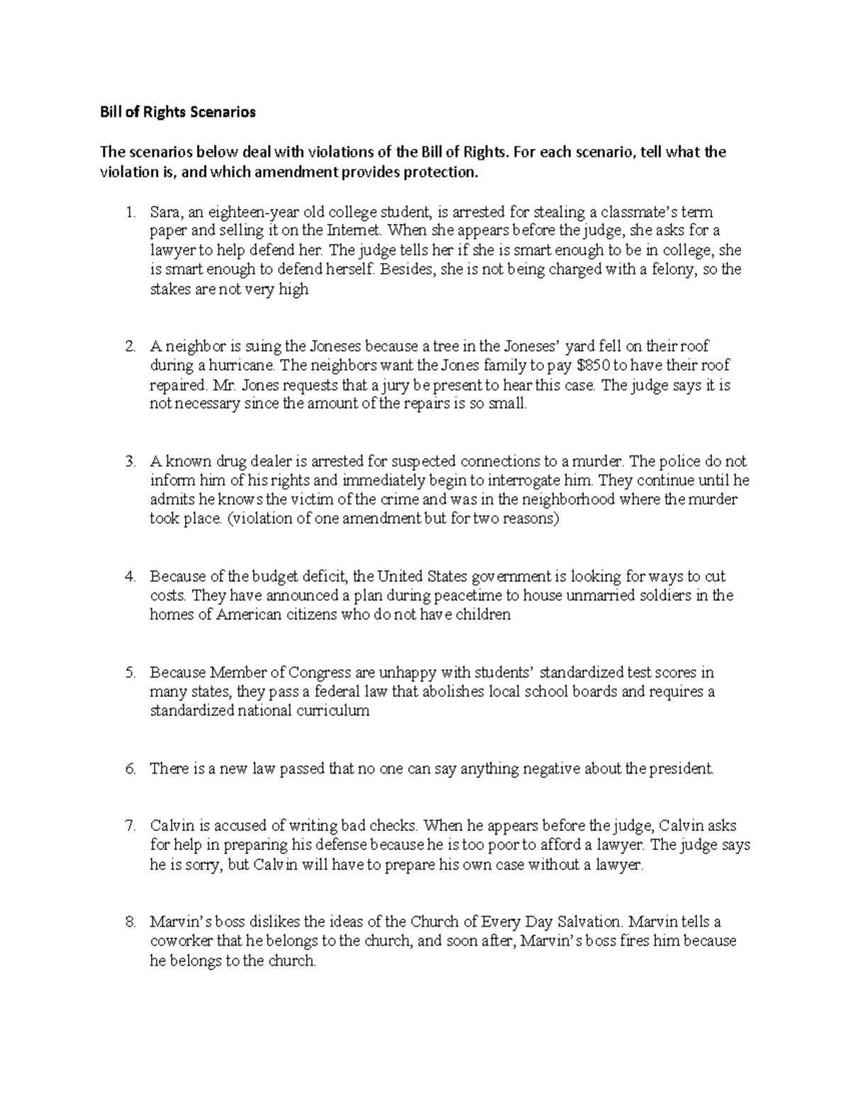 Bill Of Rights Picture Examples
