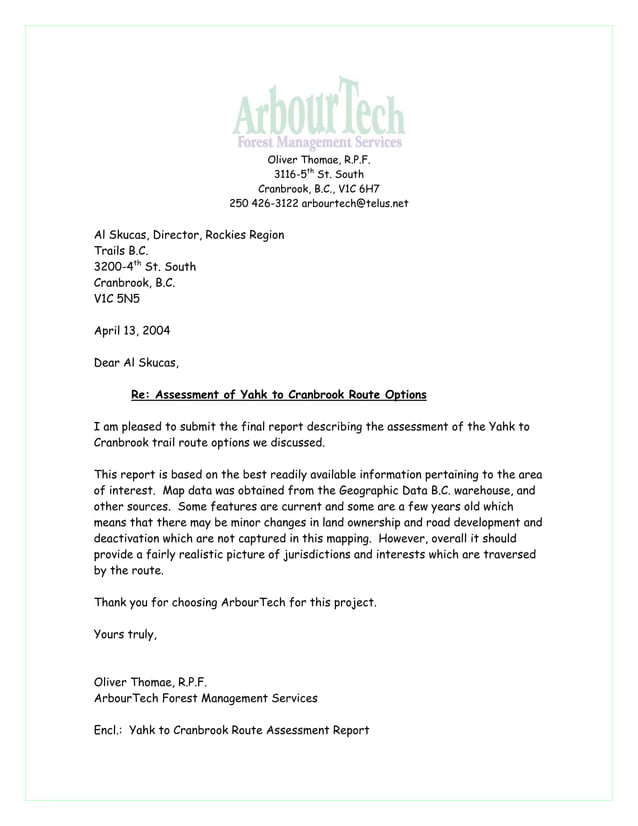 Cranbrook Yahk Assessment Report