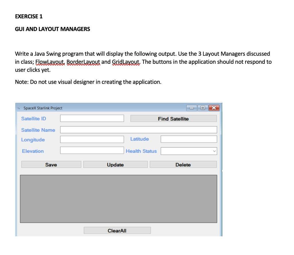 Solved EXERCISE 1 GUI AND LAYOUT MANAGERS Write a Java Swing