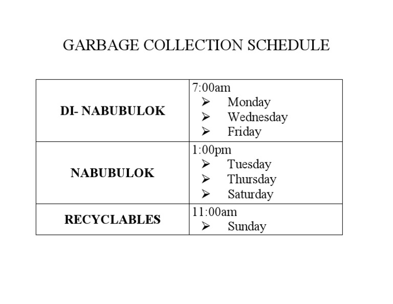 Garbage Collection Schedule PDF