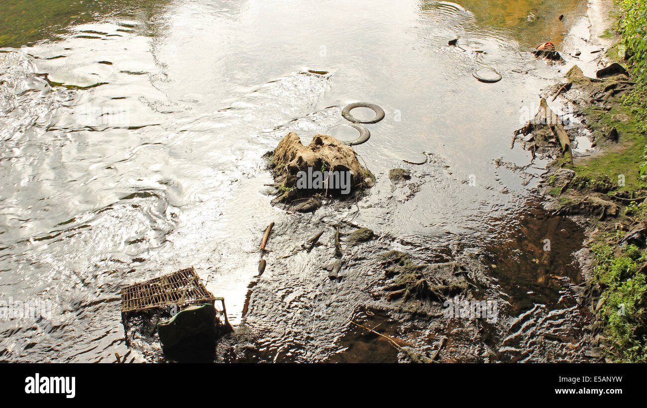Urban canal environmental damage caused by illegally dumping rubbish