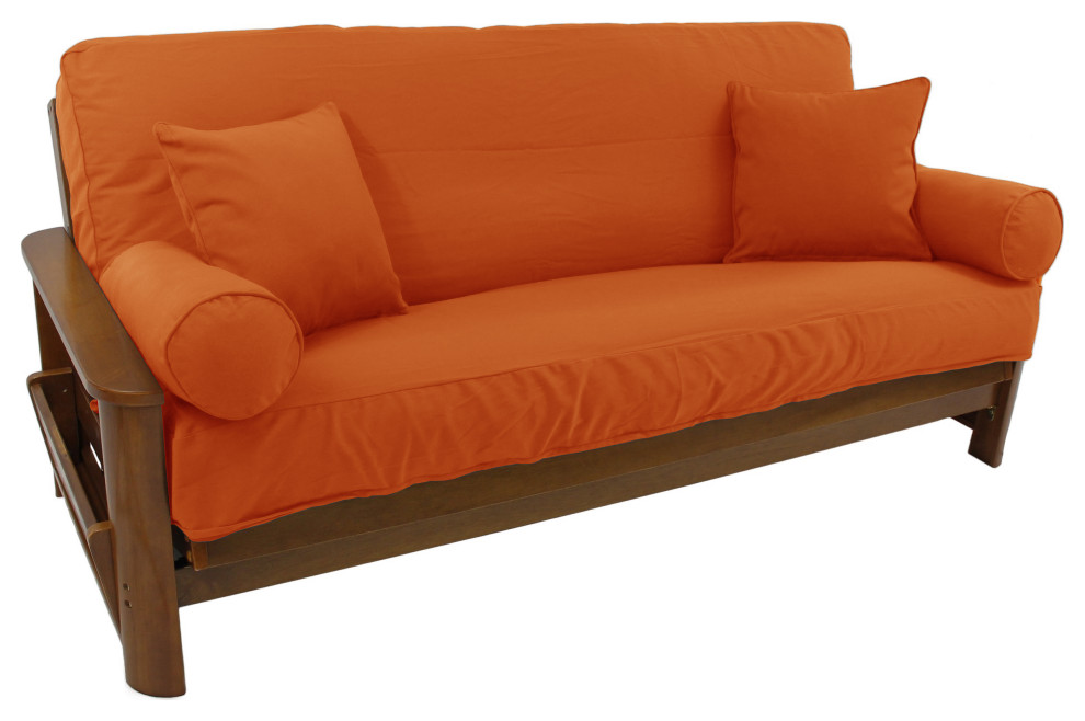 Twill Full Futon Cover With Throw Pillows, 4Piece Set, Tangerine Dream