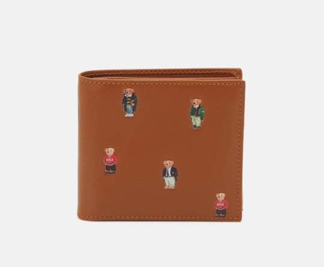 Polo Ralph Lauren Bear Teddy Mens Bifold Smooth Leather Wallet Tan All