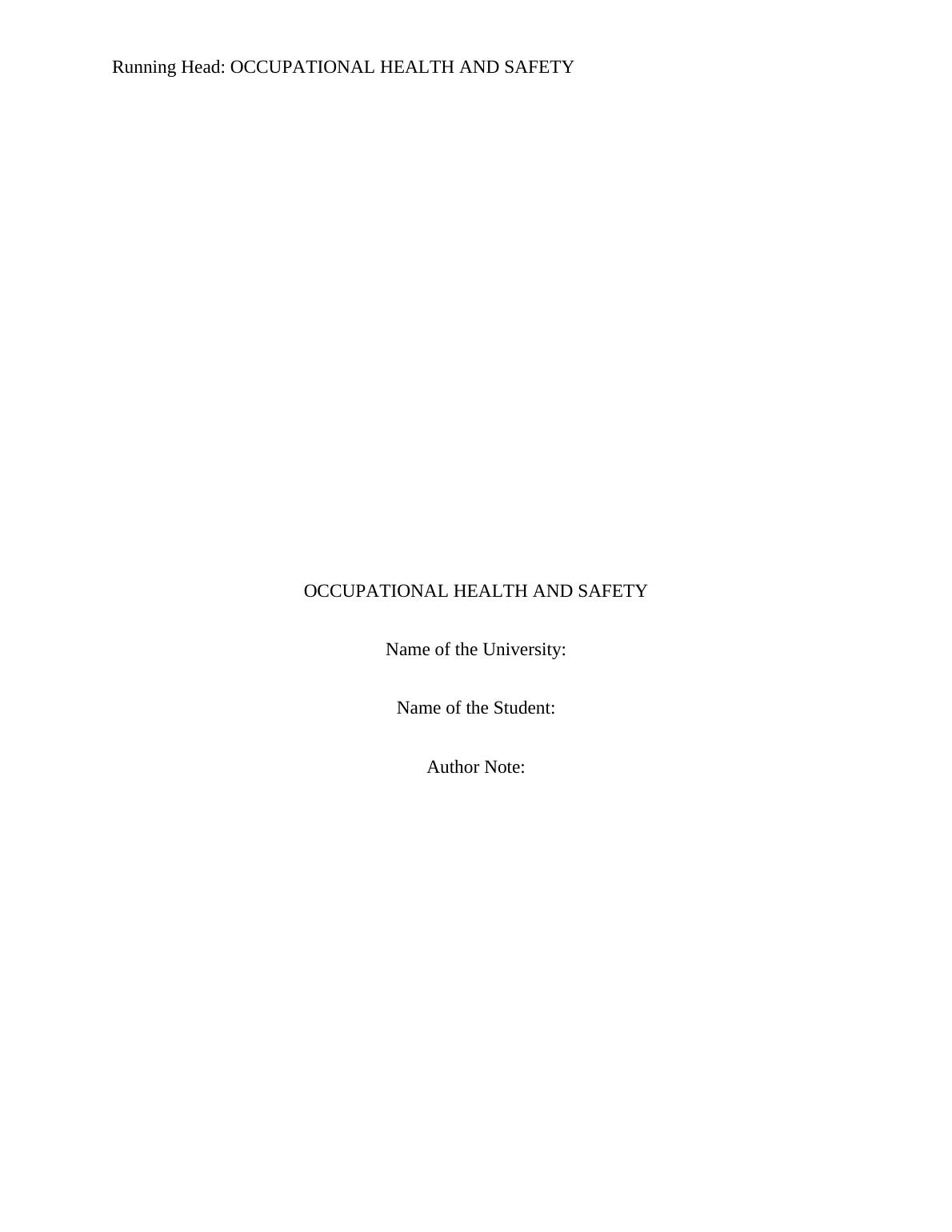 Occupational Health and Safety Study