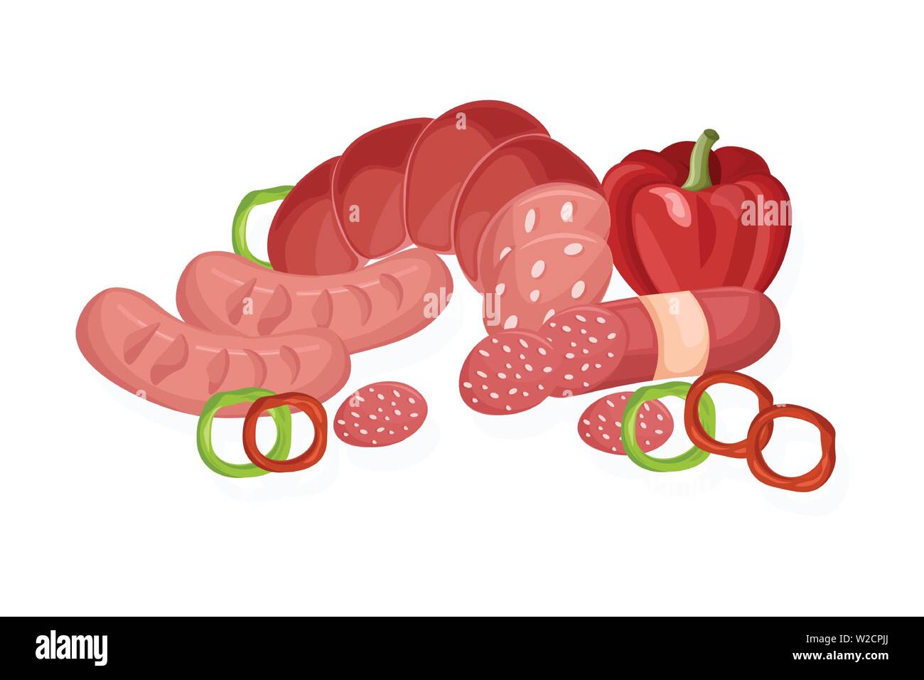 Meat set Vector. Pastrami, salami and saussage flat style Stock Vector