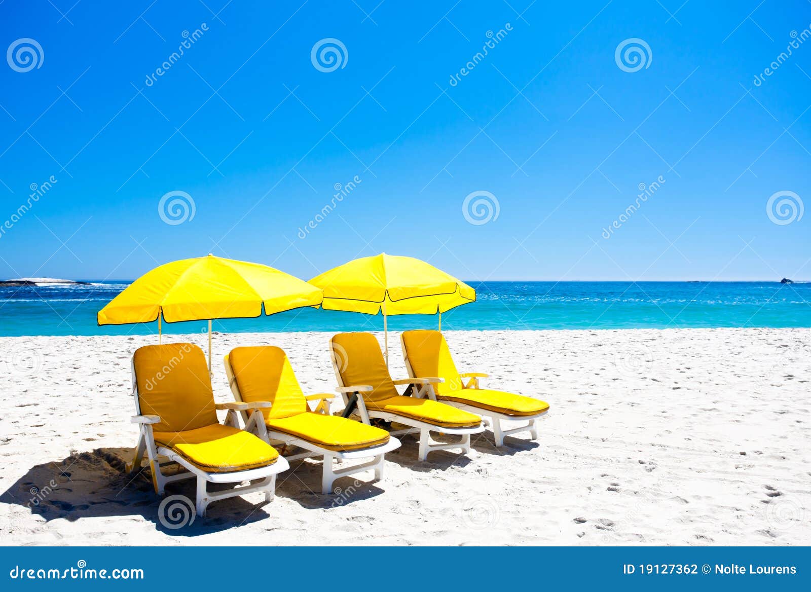Four yellow beach chairs stock photo. Image of shade 19127362