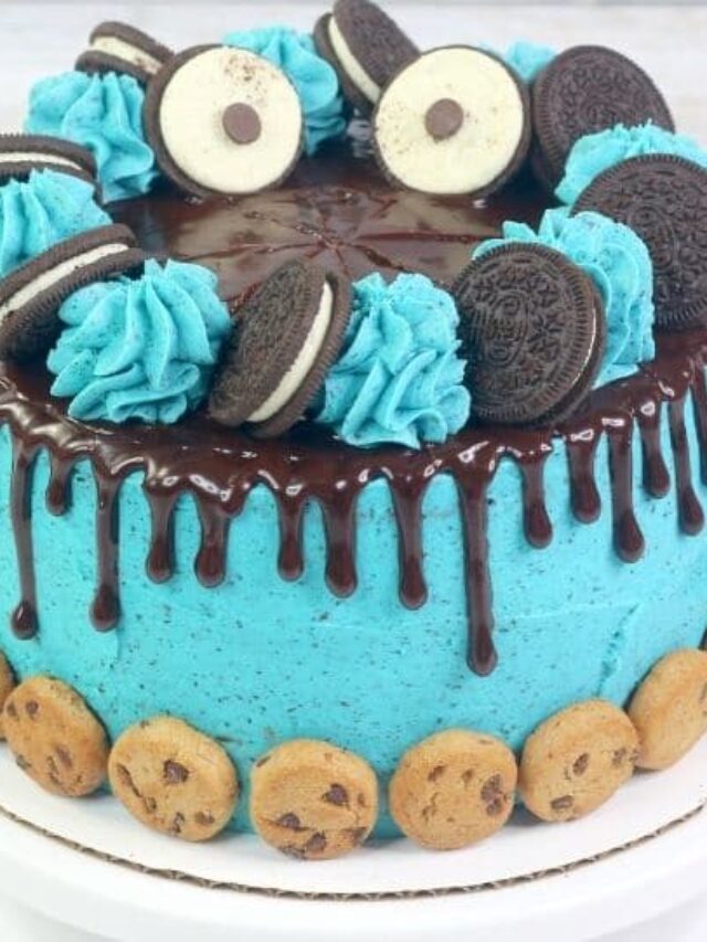 Cookie Monster Cake Cake Cookie Monster Need a cake for the ultimate cookie monster lover? Wait until you try this. This is the perfect cake for a cookie monster birthday party or smash cake. This monster cookie cake is full of m&ms, chocolate chips, peanut butter and oats. A chocolate cake, with cookie dough frosting, and topped with blue oreo frosting and decorated to look like. Cake Cookie Monster.