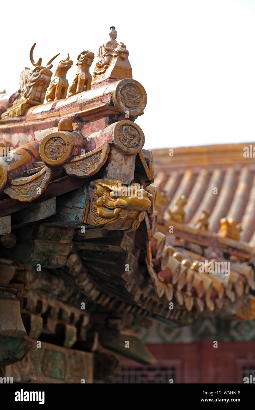 chinese old roof tiles with roof finials and chinese roof tile figures