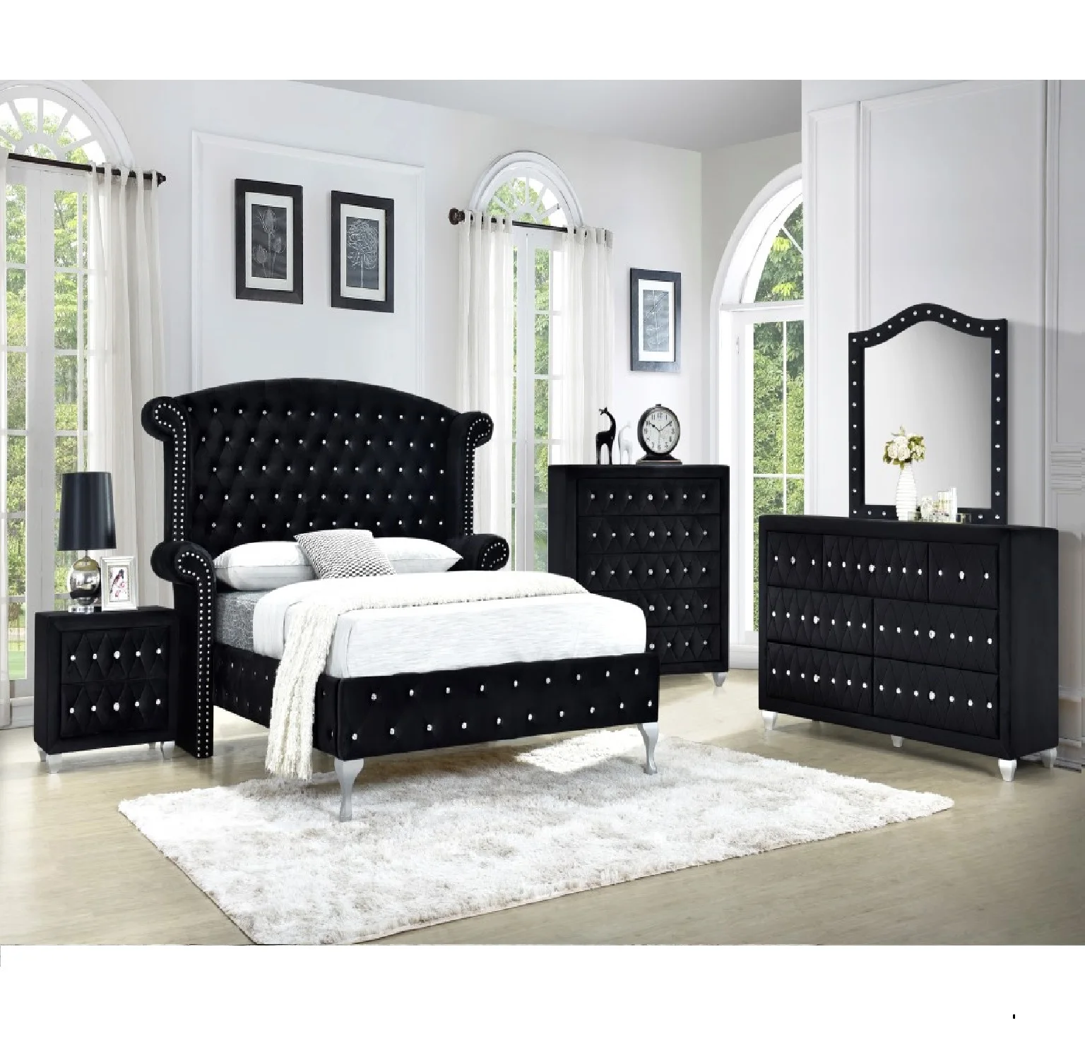 Black Velvet Art Deco Bedroom Elegant bedroom, Black velvet bed, Art Velvet Upholstery Bedroom Set Shop wayfair for the best velvet upholstered bedroom sets. Create an opulent sleeping space with this. Enjoy free shipping on most stuff, even big stuff. The velvet upholstered bed with wingback headboard offers comfort and style. Get free shipping and save more! Elevate your bedroom with this charming set. Mariah california king velvet upholstered 4 piece bedroom set with deliah. Velvet Upholstery Bedroom Set.