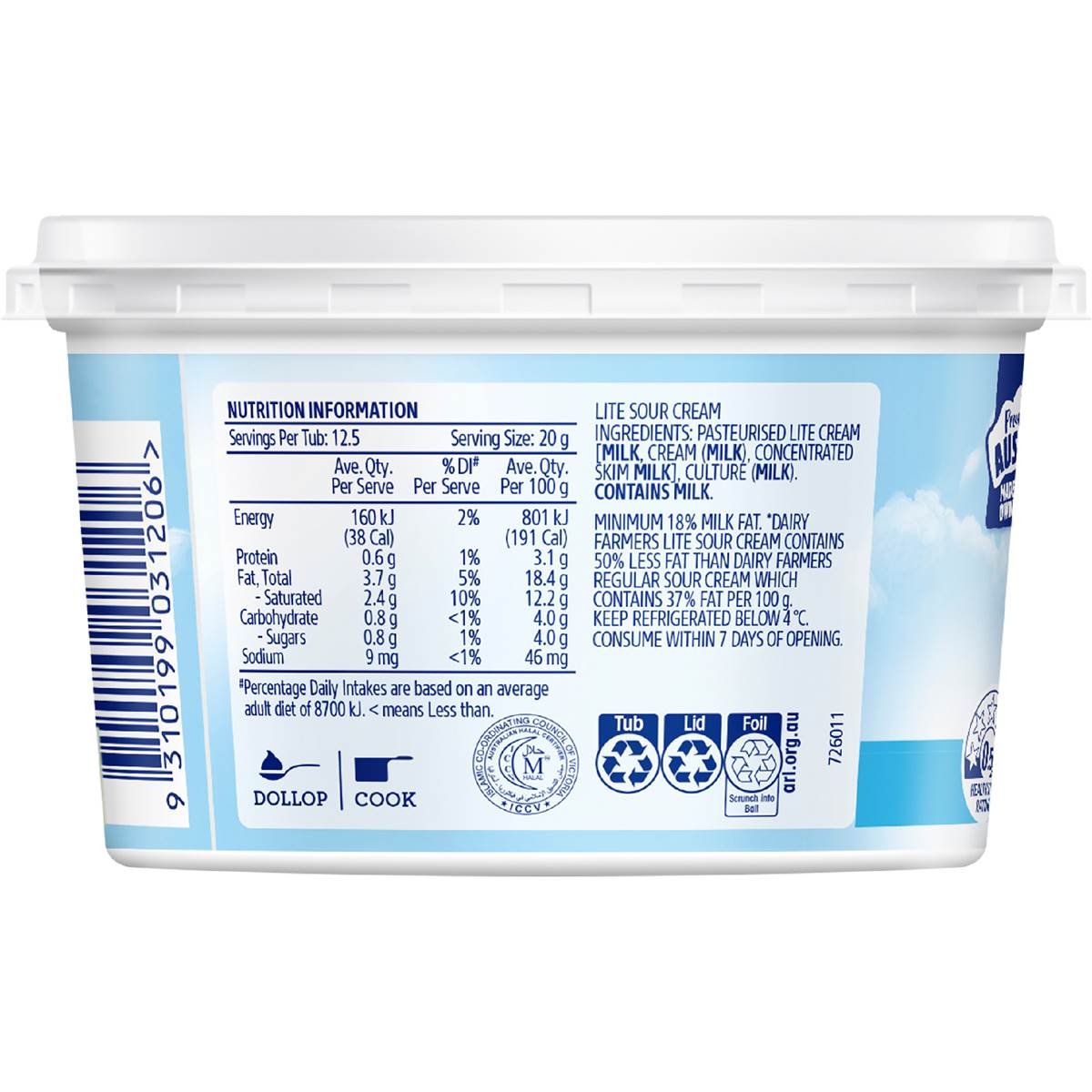 Dairy Farmers Light Sour Cream 250g Woolworths Sour Cream Dairy Farmers Best in class sour cream from farmer owned dairy farms. No matter how you pour or spoon. Dips, dressing, or dolloped on a baked potato or burrito, our naturally smooth, rich and tangy organic sour cream delights your taste buds no matter how you use it. Want to add a tangy zip to all your soups and side dishes? Alexandre. Sour Cream Dairy Farmers.