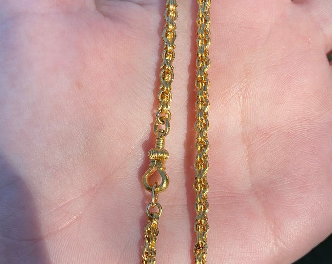 Vintage Solid 18k Yellow Gold Fancy Link Pocket Watch Chain Necklace