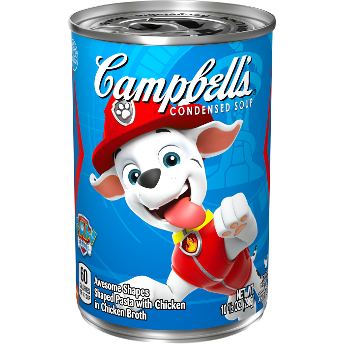 Campbell's Nickelodeon Paw Patrol Puppy Shaped Pasta with Chicken Paw Patrol Chicken Noodle Soup Make mealtime fun with a bowl of campbell’s condensed kids soup, paw patrol awesome shapes pasta with chicken in chicken broth. Fun take on chicken noodle soup: Fun take on chicken noodle soup: Make mealtime fun with a bowl of campbell’s condensed kids soup, paw patrol awesome shapes pasta with chicken in chicken broth. Make mealtime fun with a bowl. Paw Patrol Chicken Noodle Soup.